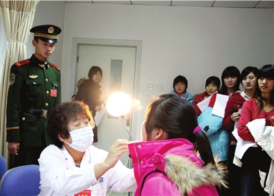 昨天開(kāi)始,北京應(yīng)征女青年體檢工作全面展開(kāi)。截至昨天,已有3000余名女青年報(bào)名,共確定1200多人參加體檢。本次體檢新增了婦科B超項(xiàng)目,而視力、體重仍為淘汰主因。