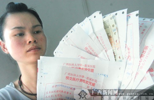 楊霏身高約160厘米,脫去口罩,端正的五官和瓜子型的臉所構(gòu)建出來的一張清秀的臉龐出現(xiàn)在記者眼前。一頭烏黑的長發(fā),額頭前的劉海也難以掩蓋略顯蒼白的臉色!艾F(xiàn)在醫(yī)生都不肯定我姐姐的病能否醫(yī)治好,但我們都沒有放棄!睏铞煅实卣f,9月6日,大姐楊耀仙突然感覺身體不舒服住進了廣西醫(yī)科大一附院西院,入院后她都不愿意吃東西,不久便昏迷了。9月11日,被檢查診斷為淋巴性結(jié)核。當天下午又做了一次腰椎穿刺檢查,發(fā)現(xiàn)姐姐還同時患上了結(jié)膜性腦膜炎。晚上8時,大姐病情突然加重,心臟曾一度停止跳動。幸好,經(jīng)過醫(yī)生搶救,終于蘇醒過來。之后,便在ICU病房內(nèi)一直觀察到9月29日才回到普通病房。隨后,她被轉(zhuǎn)到醫(yī)科大一附院救治,醫(yī)院確診她患的是結(jié)核性多重疾病。