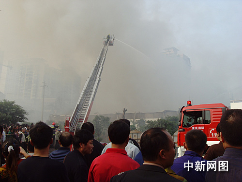 中新網(wǎng)重慶11月11日電 (孟幻)11日13時30分,位于重慶市江北區(qū)盤溪的重慶最大茶葉市場倉庫突發(fā)大火。由于火勢過猛,兩位正在房頂蓋瓦片的工人跳樓逃生,幸無生命危險。目前,大火仍在燃燒,重慶消防部門已調(diào)派27輛消防車在現(xiàn)場滅火。