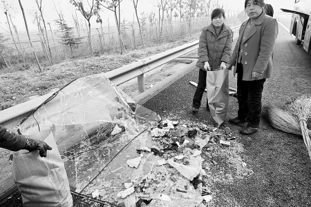 此時,距離3輛車相撞不到100米的路對面,西安前往富平方向的車道上,一輛從西安到合陽的大客車,車前駕駛室位置已經(jīng)完全凹陷,駕駛座椅被撞得掀起,車頭左前角已殘破不堪。一位中年女士臉上掛著血跡,正站在高速路邊,一臉地焦灼。她姓孟,就是這輛受損客車的車主,正等候拖車拖走事故車。她告訴記者,她的車上拉了15名乘客。“大約10點半,走到這兒看見前面有消防車,像是出事了。霧太大,還沒看清楚咋回事,玻璃就飛濺到臉上了。這才意識到追尾了,‘追’了前面的一輛油罐車”。