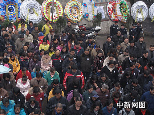 中新網(wǎng)成都12月14日電(王德明)14日,四川宜賓陰雨綿綿。下午四點(diǎn),因公殉職的宜賓縣警察文萬(wàn)彬追悼會(huì)在宜賓縣殯儀館舉行。公安部送了花圈,四川省公安廳發(fā)來唁電,共青團(tuán)宜賓市委發(fā)出了向文萬(wàn)彬同志學(xué)習(xí)的通知。省市公安局領(lǐng)導(dǎo)、宜賓市縣有關(guān)領(lǐng)導(dǎo)、滇兩省和全市兄弟區(qū)縣的同行、以及數(shù)千群眾自發(fā)前來吊唁。