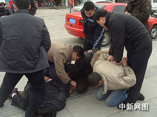 就在4名男子上車準(zhǔn)備發(fā)動(dòng)轎車的一剎那,5名民警突然猶如下山的猛虎,突然出現(xiàn)在可疑車輛兩側(cè),猛然打開(kāi)車門,在逃犯剛明白的時(shí)候,他們已經(jīng)被民警拽到車外,按倒在地!坝袃蓚(gè)人還拼命反抗,不讓我們上銬子,我們告訴他們是警察,幾個(gè)人就老實(shí)了!”整個(gè)抓捕過(guò)程也就兩三分鐘時(shí)間,當(dāng)路過(guò)的市民明白過(guò)來(lái),情不自禁地為民警鼓起了掌。