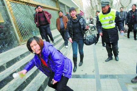 昨天,一輛?吭卩嵵菔嗅陨铰放c中原路交叉口附近飯店門前的轎車,因涂改車牌號被過往群眾舉報。交警二大隊民警趕到現(xiàn)場查處時,車上三名女子因不滿拍照,追打本報攝影記者。