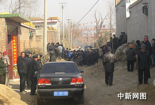 20日上午,記者走到現(xiàn)場(chǎng)時(shí),看到上百村民聚集,事發(fā)地點(diǎn)拉上了警戒線,幾輛警車停在旁邊,有干警正在現(xiàn)場(chǎng)偵查。