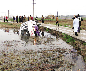 采訪中,家長們幾乎異口同聲表示,平常開車的是一名何姓男子,車技很好,可出事時開車的卻是一名不相識女子。記者發(fā)現(xiàn),出事的馬甫路李家橋路段非常狹窄,僅夠一車通行,而且從不遠處的水泥橋下來就是處彎道,之前又曾下過雨有點濕滑,可以說在這樣的路段開中巴車很具有難度。家長蔣先生告訴記者,“這完全就是對孩子不負責(zé)任,這里的道路寬不過3米,很多地方根本就無法會車,而且有的路邊就是深深的水塘和田地,稍不留神就會滑下!奔议L吳先生更是向記者表示,他認識那名開車女子,應(yīng)該是姓鮑,好像是做皮草生意的,她是不是拿中巴車來練手啊,說不定根本就沒駕照。