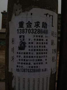 一張小廣告的內(nèi)容為:“《重金求子》性感高貴美少婦,王娜,28歲,嫁香港富商,丈夫因意 外致殘無生育能力,為了傳承家業(yè)和維護家族形象,經(jīng)夫婦合議,特來尋誠意健康男士圓夢,親談滿意,即赴你處(本人單獨與你秘密約見,不影響家庭),事成之后另有重謝!甭(lián)系電話為15180392xxx