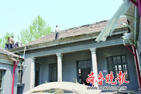 4月30日上午,濟(jì)南市中山公園東片區(qū)拆遷工作在緊張進(jìn)行。經(jīng)四路343號(hào)大院里,有幾個(gè)人翻墻入院爬到屋頂上揭瓦,濟(jì)南市體育局所屬的濟(jì)南市民體質(zhì)監(jiān)測中心工作人員正在阻止他們上到房頂揭瓦!跋旅嫖葑永镞有人呢,怎么就這么拆房?”