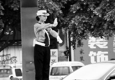 執(zhí)勤的女交警說,每個人執(zhí)勤半天,“張柏芝”上午執(zhí)了勤,下午就不用來了。
