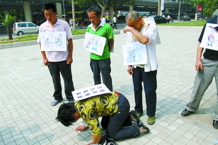正當(dāng)人們念著漫畫(huà)里諷刺滑稽的對(duì)話時(shí),一中年女子突然跪倒在地,嘴里念叨著:“當(dāng)法官也不能恁黑心啊,黑的都是我們這些農(nóng)民工的血汗錢(qián),求求好心人幫幫我們吧!