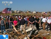 奧巴馬視察龍卷風(fēng)重災(zāi)區(qū)喬普林 全城哀悼