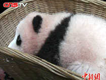 重慶熊貓寶寶滿百天 萌態(tài)搶鏡十足
