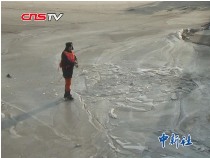 面包車(chē)冰面行駛墜江 一人逃生兩人被困