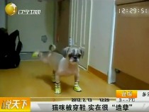 可愛小貓小狗穿鞋不會走路