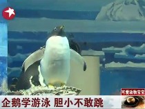 可愛(ài)小企鵝學(xué)游泳 膽小不敢跳下水