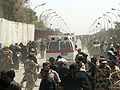 圖文報道:救護車停在巴格達踩踏現(xiàn)場的人群中