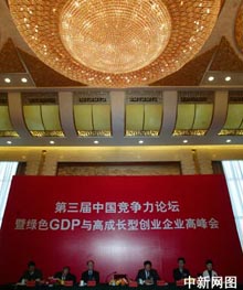 由中國新聞社主辦的第三屆中國競(jìng)爭(zhēng)力論壇暨綠色GDP與高成長(zhǎng)型企業(yè)高峰論壇10日在北京人民大會(huì)堂開幕。本次論壇的主題是“倡導(dǎo)‘十一五’綠色成長(zhǎng)理念,打造高成長(zhǎng)型企業(yè)”。