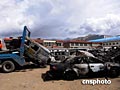 環(huán)保局的工作人員正集中處理被焚車輛