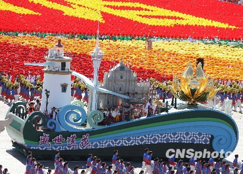 圖:國(guó)慶慶典上的“澳門(mén)”彩車(chē)