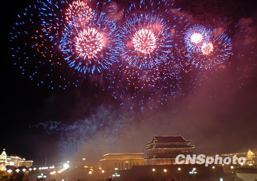 圖:煙花綻放國(guó)慶六十周年聯(lián)歡晚會(huì)