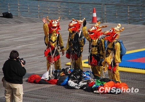 圖:“八一”跳傘隊澳門上演“仙女下凡”