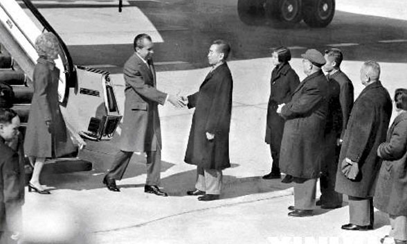 26日,周恩來(lái)總理陪同尼克松總統(tǒng)赴杭州訪問(wèn)。之后,尼克松一行飛往上海。