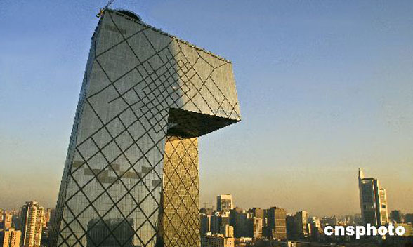 央視新址工程位于北京市朝陽區(qū)中央商務(wù)區(qū)(CBD)核心地帶,2004年9月開工。其兩棟主樓分別為52層、高234米和44層、高194米,并由懸臂鋼結(jié)構(gòu)連接,總建筑面積495900平方米,號稱“中國公共建筑‘第一單’”。央視新址懸臂鋼結(jié)構(gòu)即兩棟主塔樓分別以大跨度外伸部分在162米以上高空懸挑75.165米和67.165米,然后折形相交對接,在大樓頂部形成折形門式結(jié)構(gòu)體系。懸臂共14層、寬39.1米、高56米,用鋼量為1.8萬噸,相當(dāng)于將中國第一鋼廈深圳發(fā)展中心懸空建造。