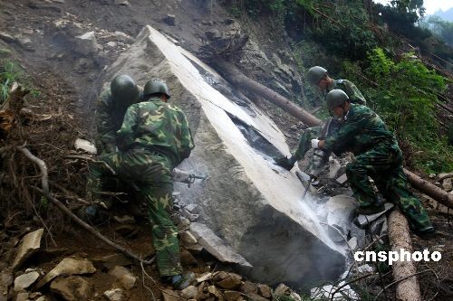 圖:武警工程兵冒險(xiǎn)搶修"大熊貓生命之路"