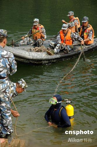 圖:海軍陸戰(zhàn)隊(duì)“蛙人”在震區(qū)危險(xiǎn)水庫(kù)排水減壓