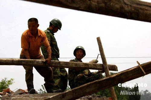 圖:中國(guó)空降兵四川震區(qū)幫民眾重建家園