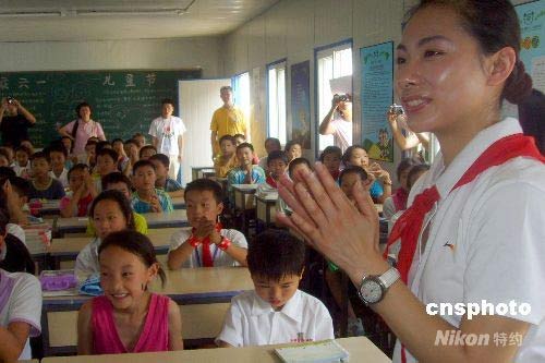 圖:李寧、劉璇等奧運(yùn)冠軍慰問(wèn)災(zāi)區(qū)兒童