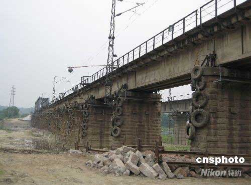 圖:綿陽(yáng)鐵路橋嚴(yán)陣以待唐家山堰塞湖泄流