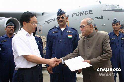 圖:印度外長(zhǎng)慕克吉慰問(wèn)四川災(zāi)區(qū)