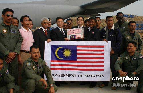 圖:馬來(lái)西亞首批救援物資抵成都