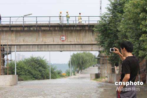 圖:上萬(wàn)綿陽(yáng)市民涌向河堤探望洪水水勢(shì)