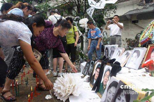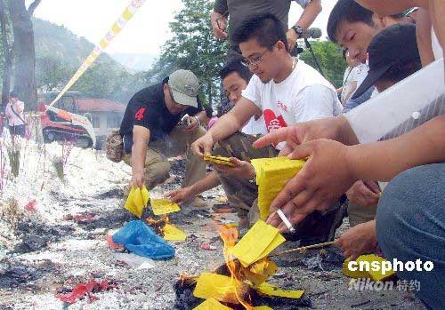 圖:志愿者祭奠北川中學(xué)遇難學(xué)生