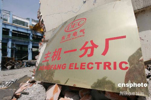 圖:東方汽輪機廠清理災(zāi)后廠房準(zhǔn)備重建