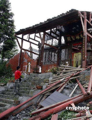 圖:汶川地震使都江堰二王廟損毀嚴(yán)重