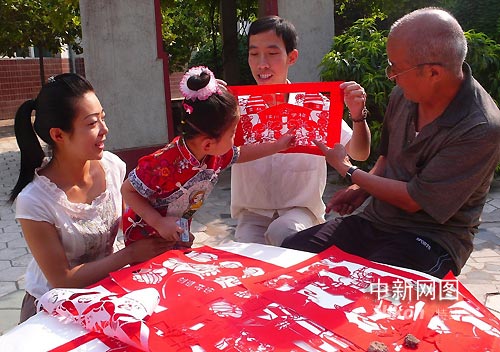 圖:山西侯馬民間藝人創(chuàng)作抗震救災(zāi)剪紙作品
