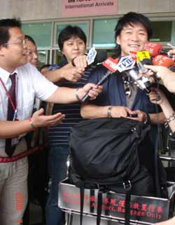 圖:大陸居民赴臺旅游首發(fā)團抵松山機場