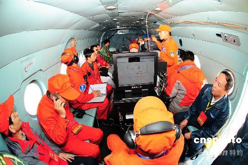 神七返回艙空中搜救分隊指揮組實施空中適時指揮