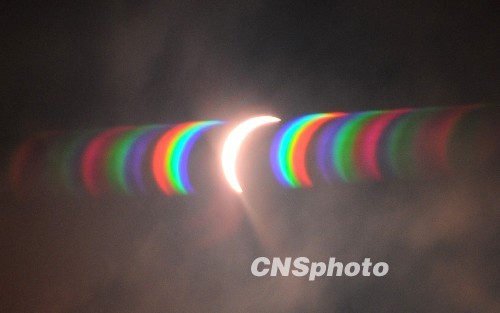 中國各地觀測日食奇觀:南寧出現(xiàn)日食奇特景觀