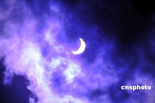 中國各地觀測日食奇觀:連云港上空出現(xiàn)日偏食景觀