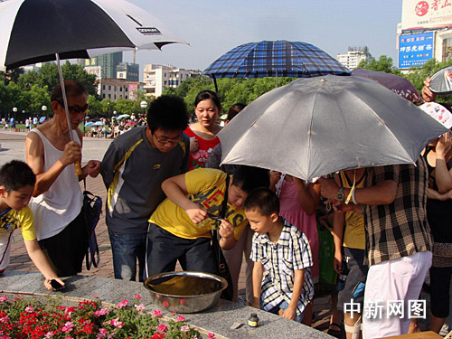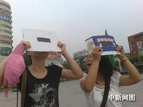 圖:湖北宜昌市民用土方法觀看日全食