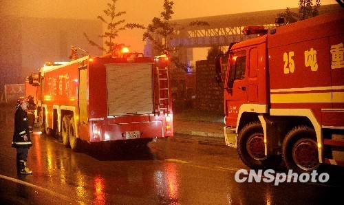 圖:大連新港輸油管道爆炸起火 消防官兵在滅火現(xiàn)場