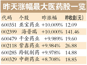 近日,國家工信部、衛(wèi)生部、國家食品藥品監(jiān)督管理局聯(lián)合發(fā)布《關(guān)于加快醫(yī)藥行業(yè)結(jié)構(gòu)調(diào)整的指導(dǎo)意見》,支持我國醫(yī)藥產(chǎn)業(yè)發(fā)展。并且對于對大型企業(yè)跨省(區(qū)、市)重組后的改擴(kuò)項目優(yōu)先予以核準(zhǔn),在股票發(fā)行、企業(yè)債券、中期票據(jù)以及銀行貸款方面給予支持,從而提高整個行業(yè)的產(chǎn)業(yè)集中度,培養(yǎng)大型醫(yī)藥集團(tuán),提高醫(yī)藥產(chǎn)業(yè)集中度。受此消息影響,昨天醫(yī)藥板塊表現(xiàn)十分搶眼。