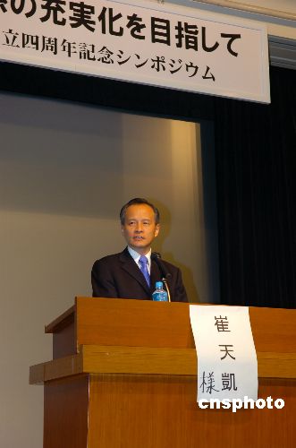 11月2日下午,日本華人教授協(xié)會(huì)在東京朝日禮堂舉行創(chuàng)建四周年研討會(huì),中國駐日使館崔天凱大使出席并發(fā)表基調(diào)演講,來自日本政界、商界、學(xué)術(shù)界、中國駐日使館以及當(dāng)?shù)孛襟w相關(guān)人士近400人參加。此次研討會(huì)的主題為“進(jìn)一步充實(shí)中日戰(zhàn)略互惠關(guān)系”。與會(huì)專家從政治外交、經(jīng)濟(jì)金融、科學(xué)技術(shù)和文化教育領(lǐng)域就研討會(huì)的主題進(jìn)行了探討。在基調(diào)演講中,崔天凱大使就當(dāng)前中日關(guān)系的發(fā)展提出幾點(diǎn)意見。中新社發(fā) 滕劍峰 攝