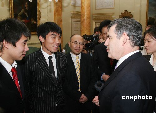 當(dāng)?shù)貢r(shí)間1月14日下午,即將訪華的英國首相布朗在唐寧街十號(hào)會(huì)見旅英華人華僑、中資機(jī)構(gòu)負(fù)責(zé)人、留學(xué)生等華人杰出代表。中國足球明星鄭智和董方卓作為受邀代表一同出席。中新社發(fā) 李鵬 攝