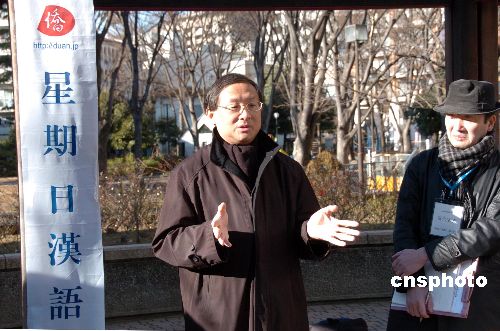 1月27日下午,在日本訪問的蔡建國教授來到東京星期日漢語角,和日本朋友進行交流。蔡建國教授介紹了中國改革開放30年取得的成果,就中日文化交流、北京奧運會等話題進行演講。蔡建國博士原是日本新瀉國際情報大學教授、現(xiàn)任上海同濟大學亞太研究中心主任兼國際文化交流學院院長、致公黨中央常委,日前當選第十一屆全國政協(xié)委員。中新社發(fā) 段躍中 攝