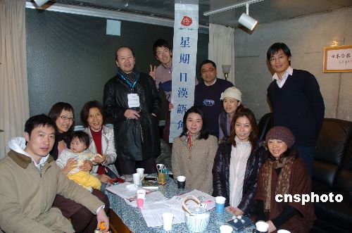 2月3日下午,新保隆之(中)和第25次星期日漢語角參加者合影。