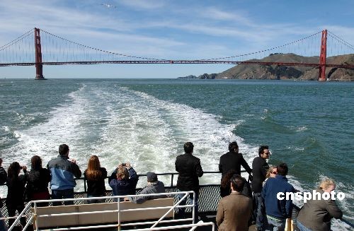 3月初的美國舊金山陽光明媚,大批游客乘坐旅游船觀賞金門大橋的雄姿。首批中國赴美旅游團有望在今年夏天成行,中國內地旅游社已著手設計赴美旅游線路,其中擁有廣泛知名度的舊金山金門大橋將成為必選景點。中新社發(fā) 張煒 攝
